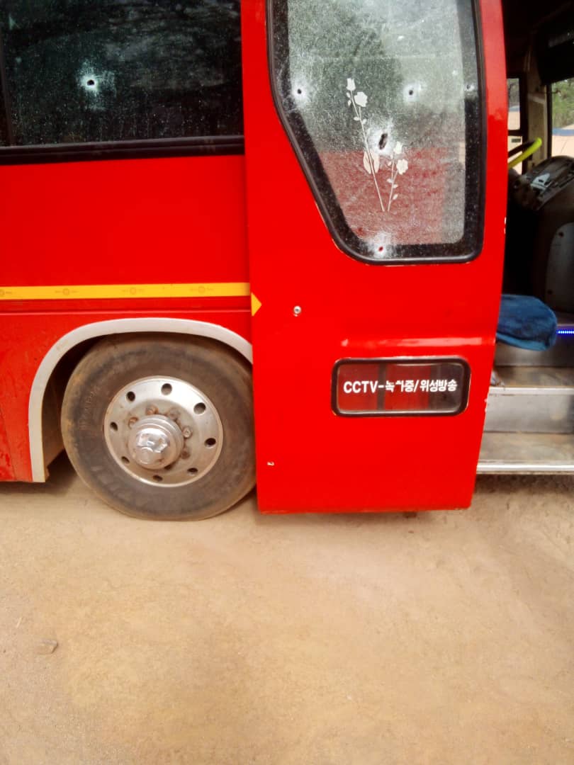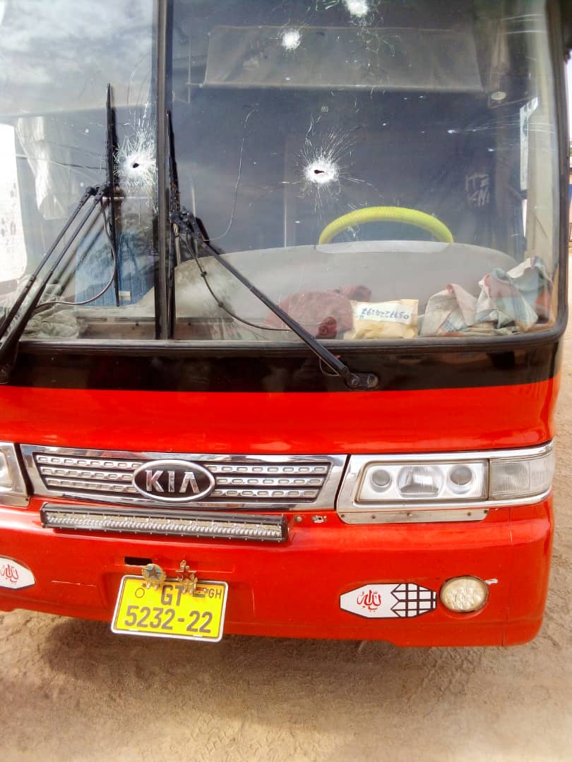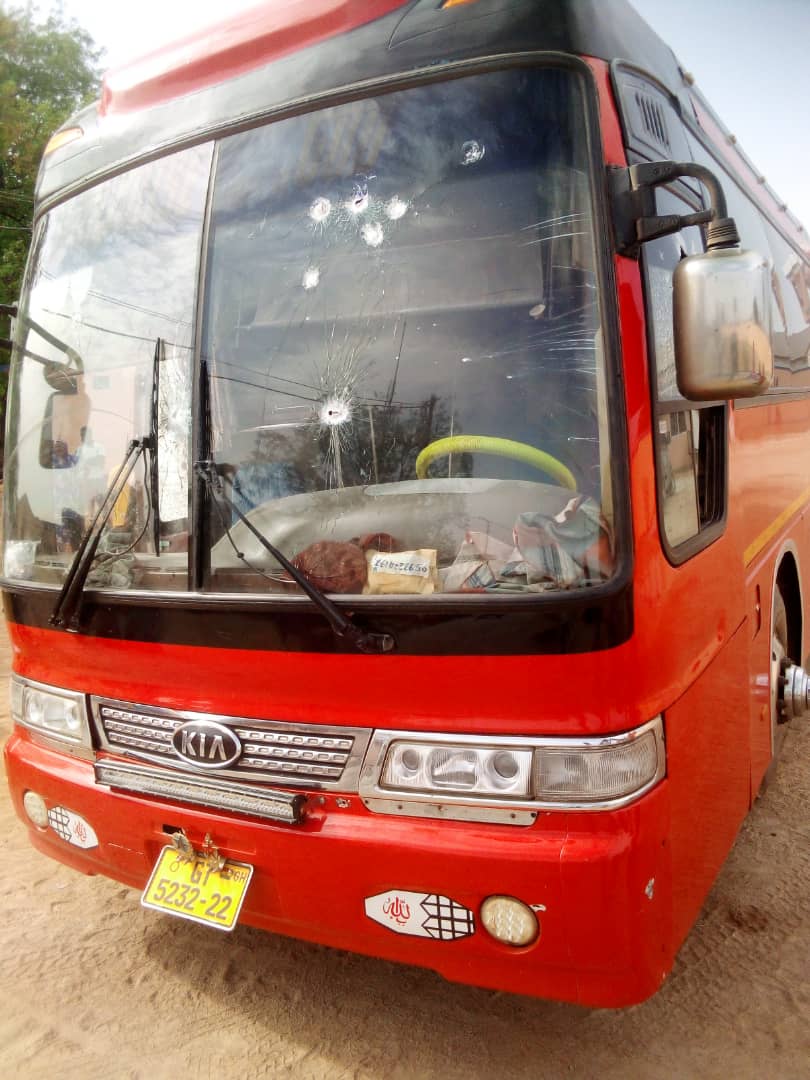 A Bawku-Accra bound bus with police escort was shot at on Thursday late afternoon. The incident occurred near Bawku Secondary School. There were several casualties.