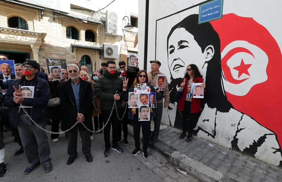 Supporters of Tunisia’s Republican Party demand the release of all the political prisoners detained a year ago by President Kaïs Saïed.
