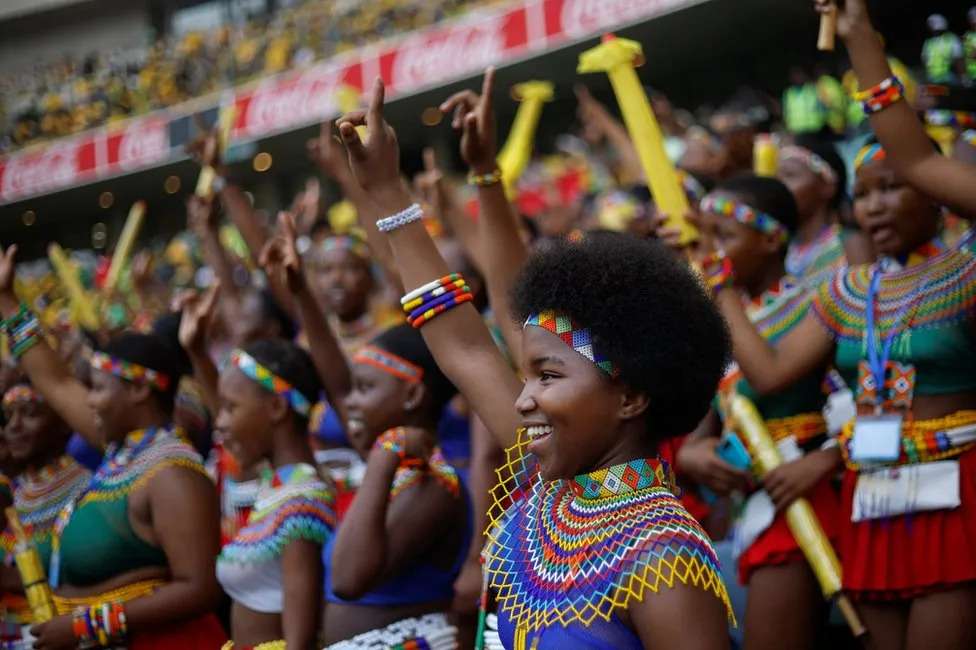 While across South Africa, in Durban, these girls don traditional beaded styles at the governing ANC’s manifesto launch.