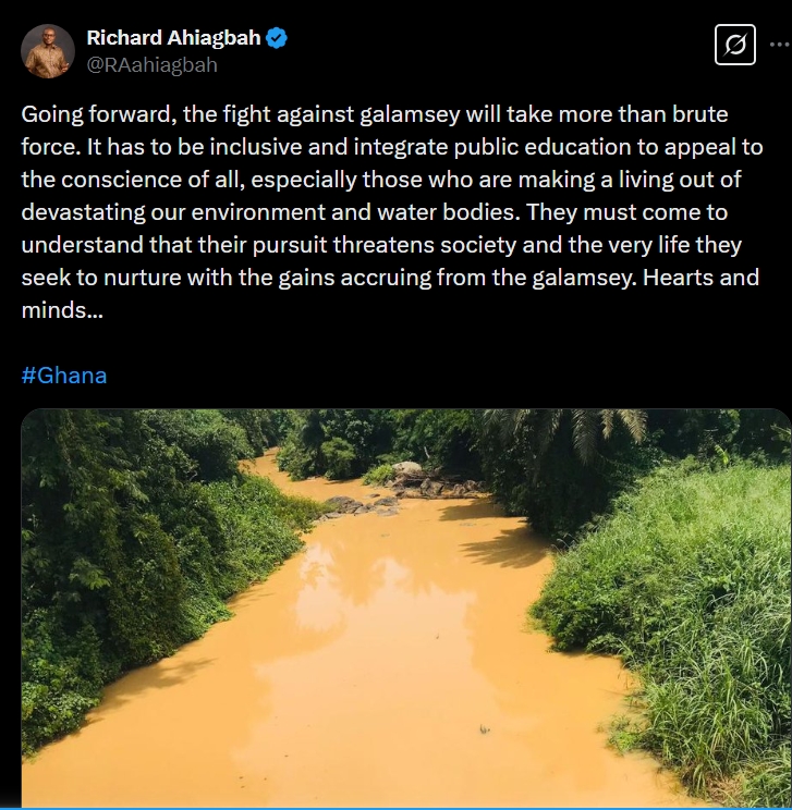 In a post on X, he emphasized that the fight against galamsey should go beyond brute force, advocating for public education to raise awareness about its dangers.