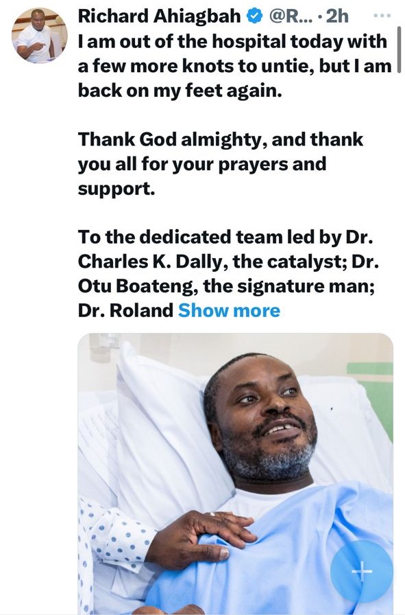 Mr Richard Ahiagbah, Director of Communications of the NPP, has been discharged from the hospital following a period of critical care after surviving a severe road accident. In a post on X, he expressed relief and gratitude for the support he received.