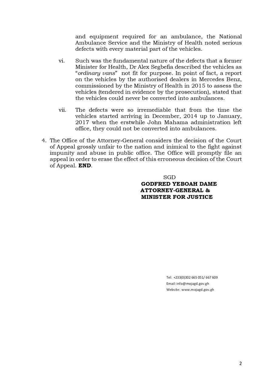 The case centers around the importation of vehicles purported to be ambulances in December 2014, which the Attorney-General contends violated the terms of the governing contract. The Ministry of Health, under then-Minister Sherry Ayittey, had advised against the importation, noting that there was no request for such vehicles or for the establishment of letters of credit to facilitate their payment.