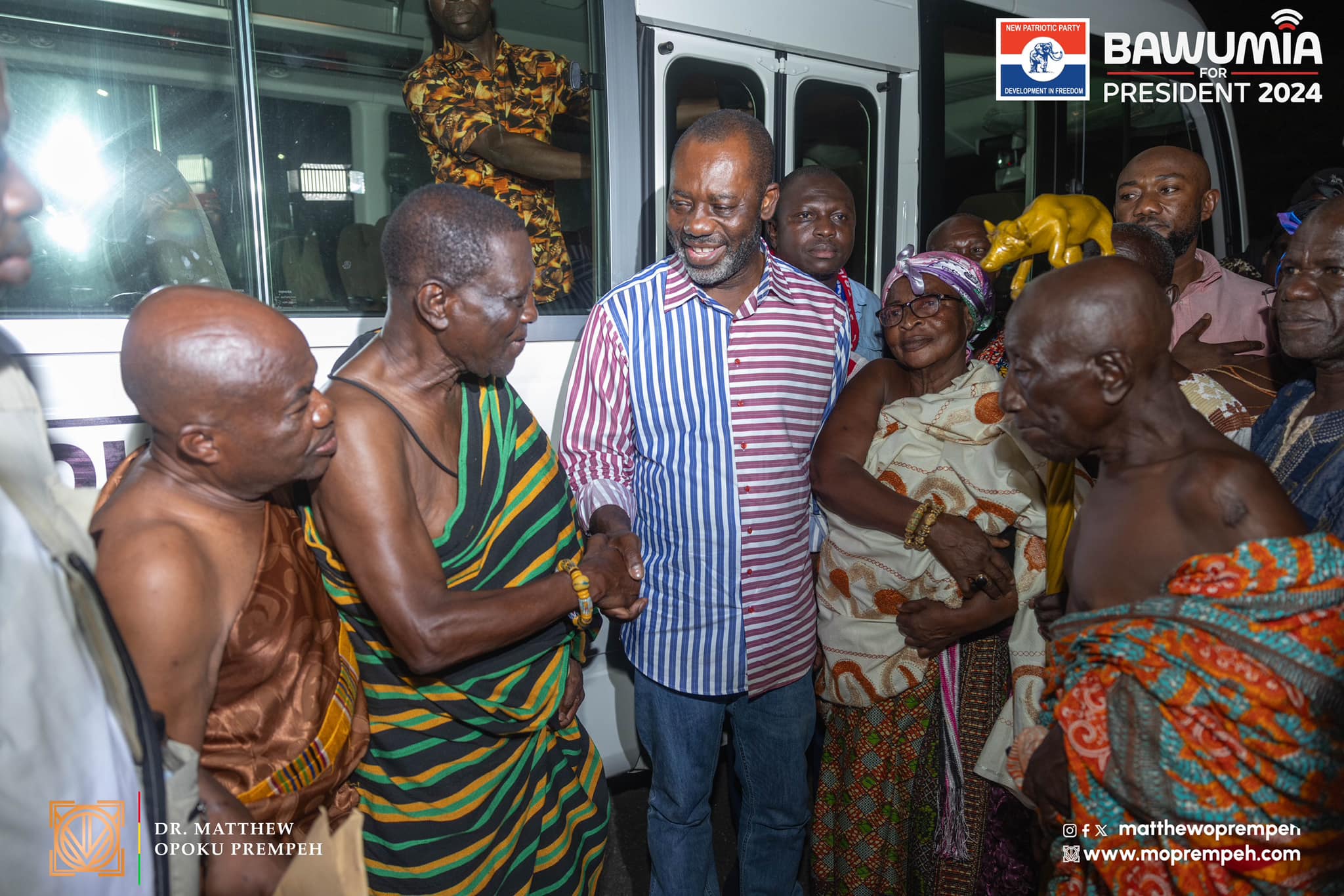 In a significant gesture aimed at strengthening ties with traditional authorities, Dr. Matthew Opoku Prempeh presented a bus to the Berekum Traditional Council on behalf of Dr. Mahamudu Bawumia. This event took place during a courtesy call with the council, fulfilling a pledge made by Dr. Bawumia during his campaign tour of the Bono Region.