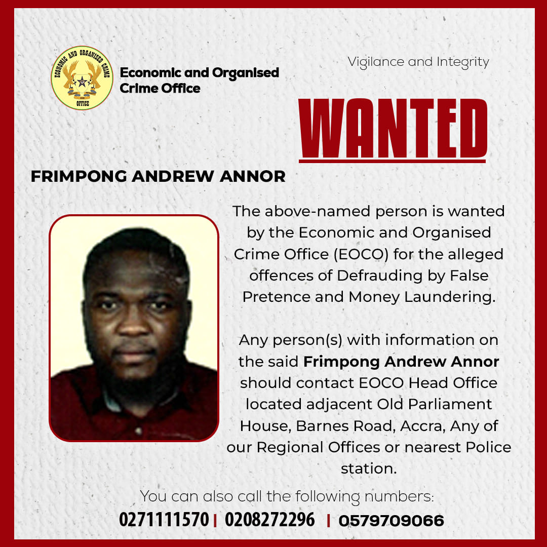 EOCO has called on the public to assist in locating these individuals. Information leading to their arrest can be reported to EOCO’s headquarters on Barnes Road in Accra, its regional offices, or the nearest police station. Citizens can also contact the agency via its hotlines: 0271111570, 0208272296, and 0579709066.