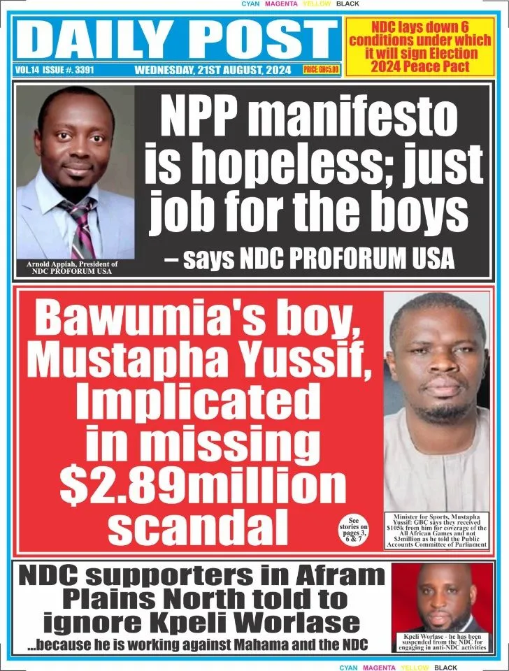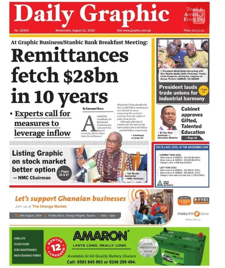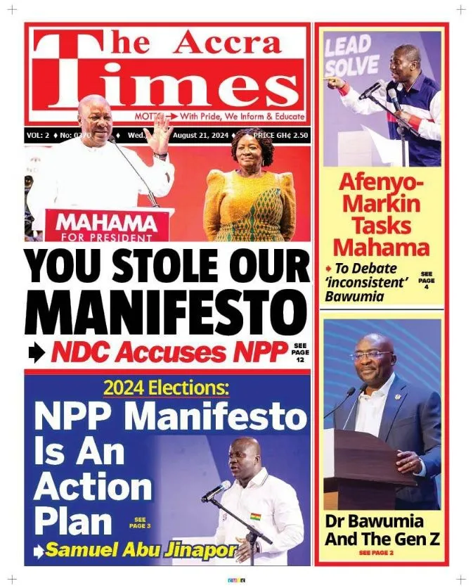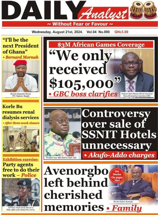 Ghana Newspaper Headlines Wednesday, 21st August, 2024