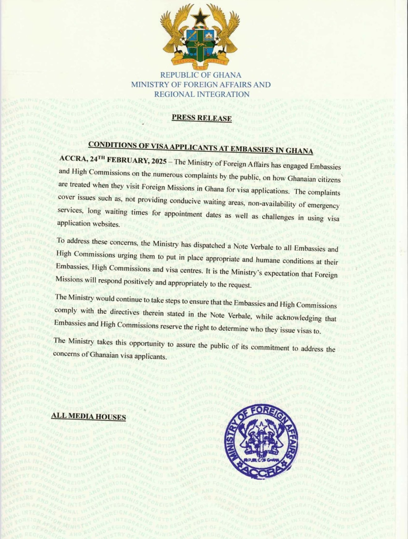 While recognizing that embassies and high commissions retain full discretion over visa issuance, the ministry assured the public of its commitment to monitoring compliance and advocating for better treatment of Ghanaian applicants.