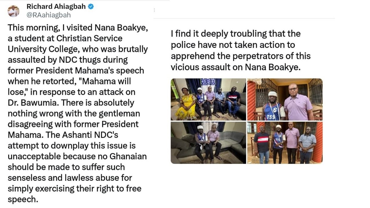 In response to this matter, the Director of Communications of the NPP, Mr. Richard Ahiagbah, has expressed disapproval of the police for their inaction in apprehending the perpetrators and called for immediate action from law enforcement authorities. “It is deeply troubling that the police have not taken action to arrest those responsible for this vicious assault on Nana Boakye. We demand justice for him and a thorough investigation into this matter,” he wrote on X.