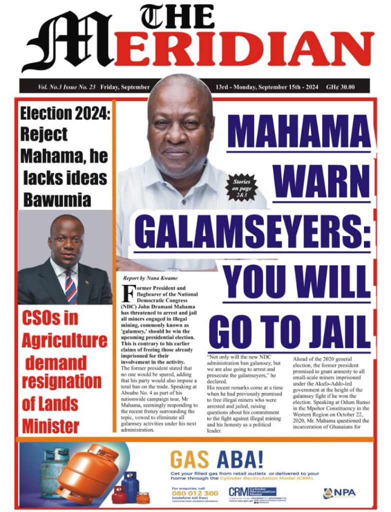 NEWSPAPER HEADLINES: Friday 13th September 2024