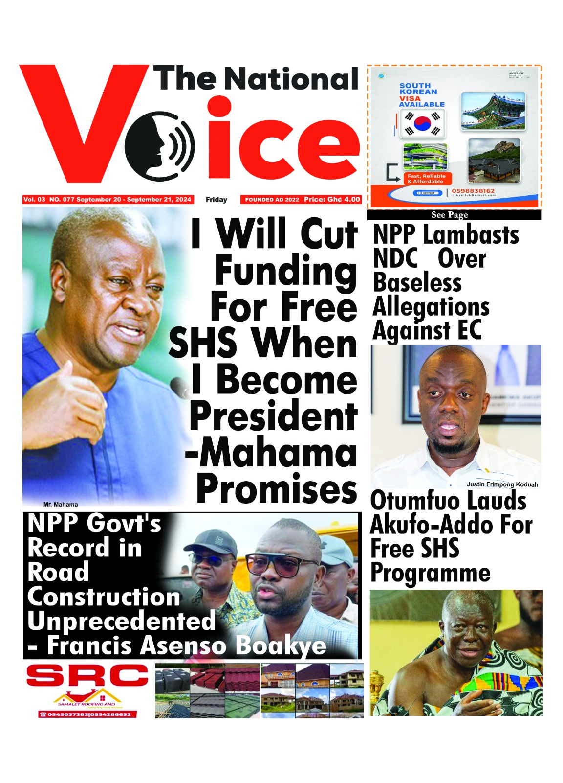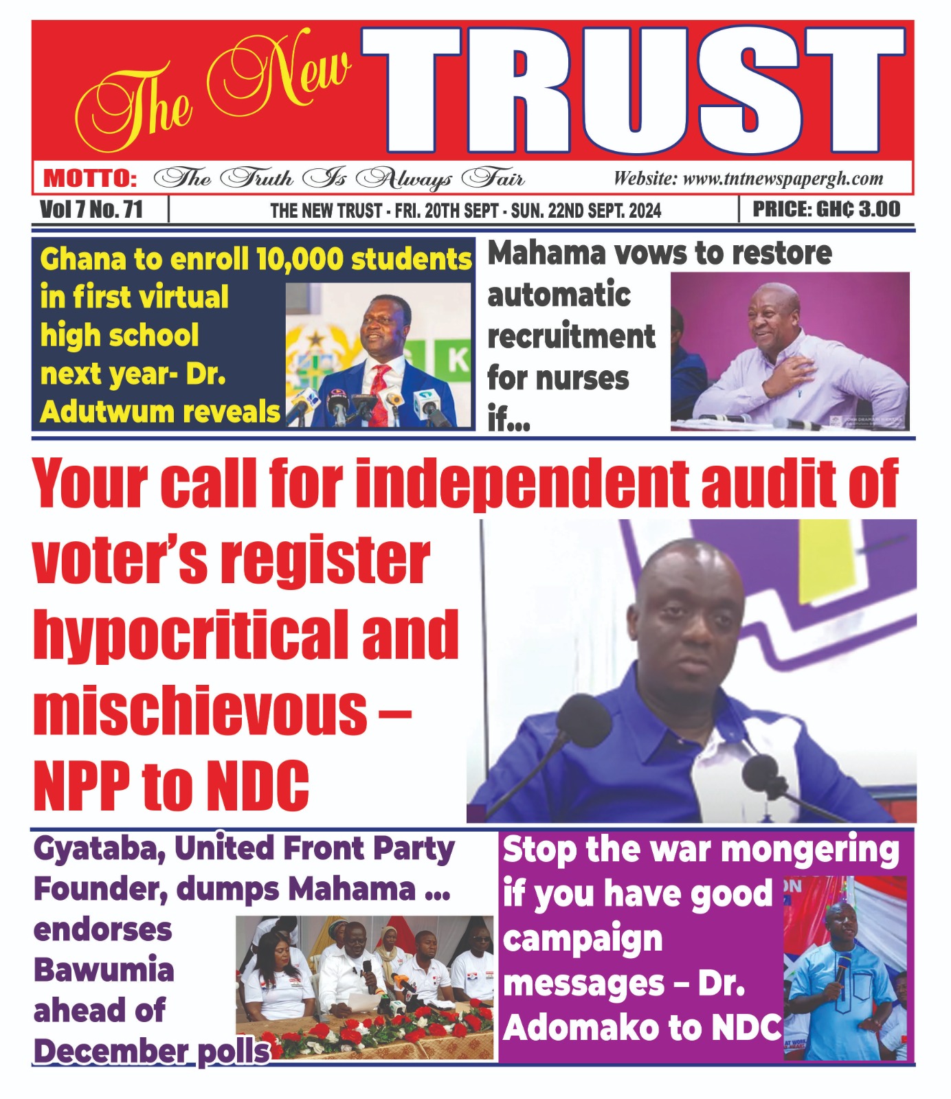 Highlights of the top stories making headlines on the front pages of Ghanaian newspapers for Friday, September 20, 2024.