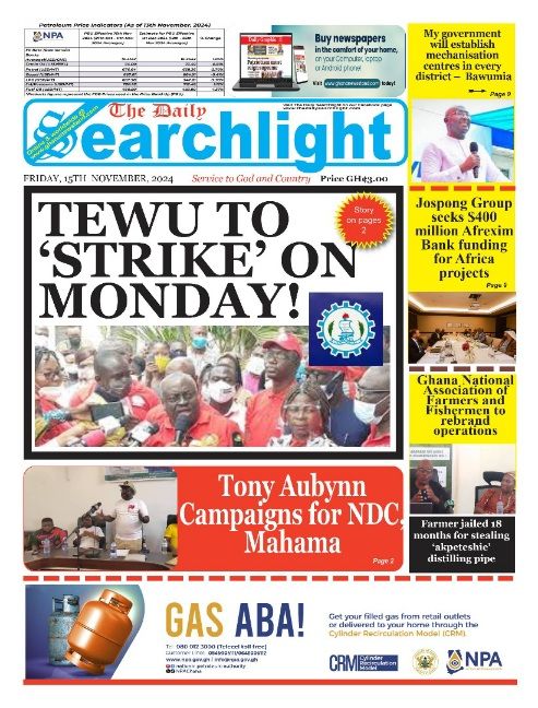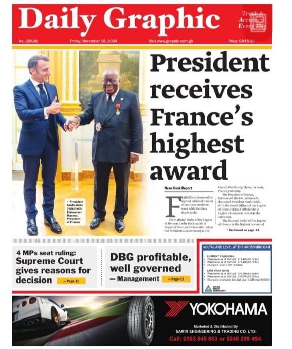 RGG NEWS takes a look at the top stories making headlines on the front pages of Ghanaian newspapers for Friday, November 15, 2024