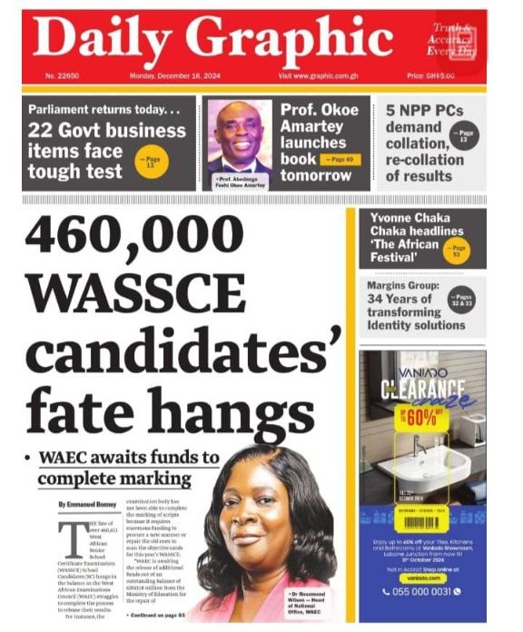 Ghanaian newspaper headlines: Monday 4th December 2023