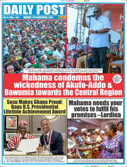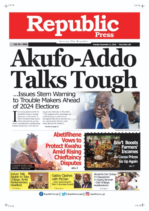 RGG NEWS takes a look at the top stories making headlines on the front pages of Ghanaian newspapers for Monday, November 11, 2024