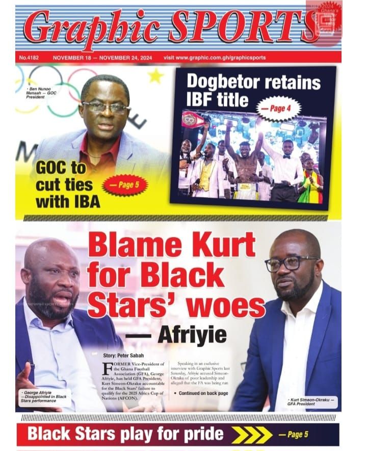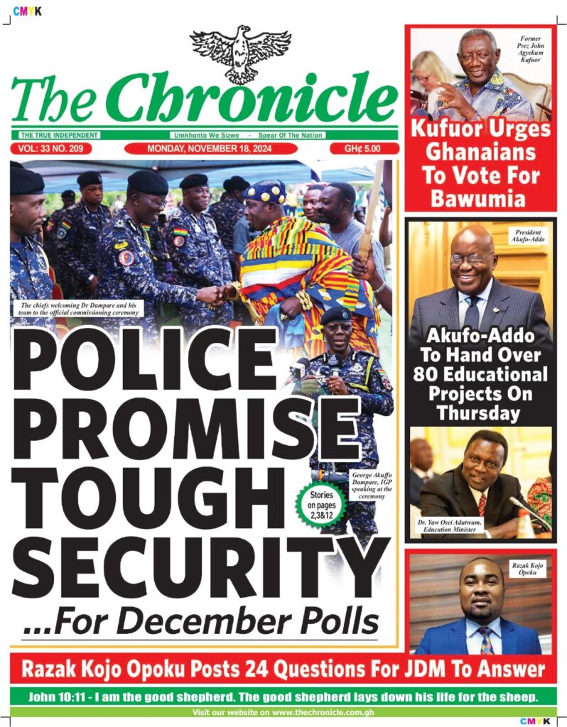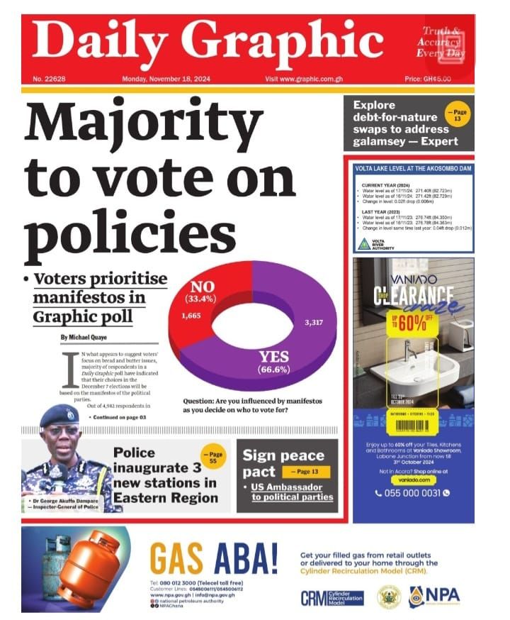 RGG NEWS takes a look at the top stories making headlines on the front pages of Ghanaian newspapers for Monday, November 18, 2024