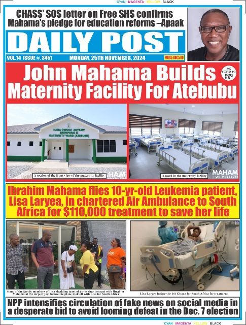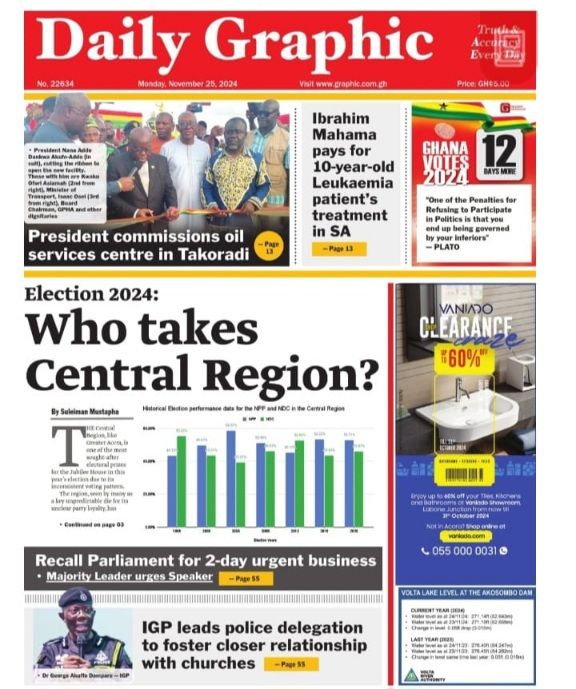 RGG NEWS takes a look at the top stories making headlines on the front pages of Ghanaian newspapers for Monday, November 25, 2024