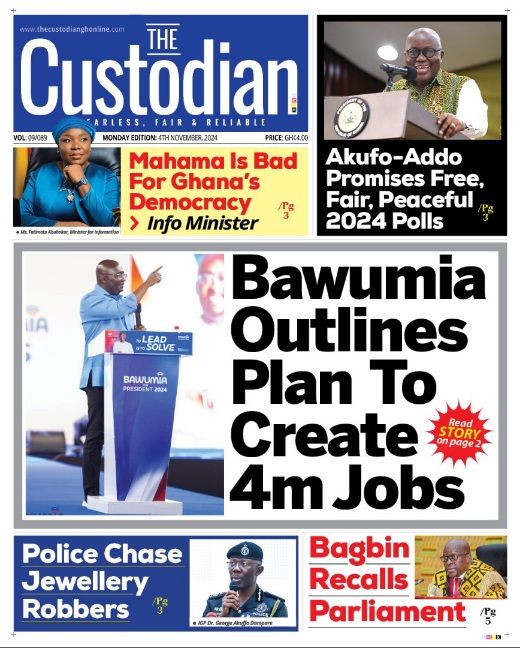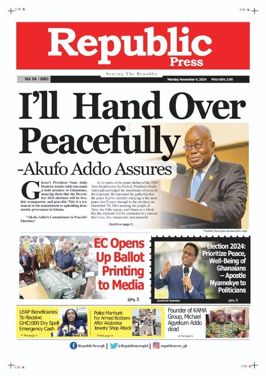 RGG NEWS takes a look at the top stories making headlines on the front pages of Ghanaian newspapers for Monday, November 4, 2024