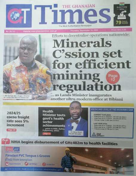 NEWSPAPER HEADLINES: Thursday 19th September, 2024