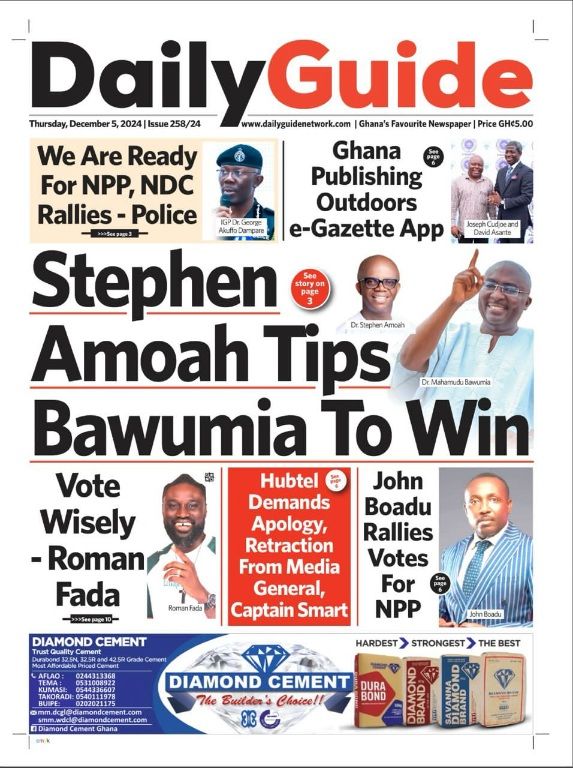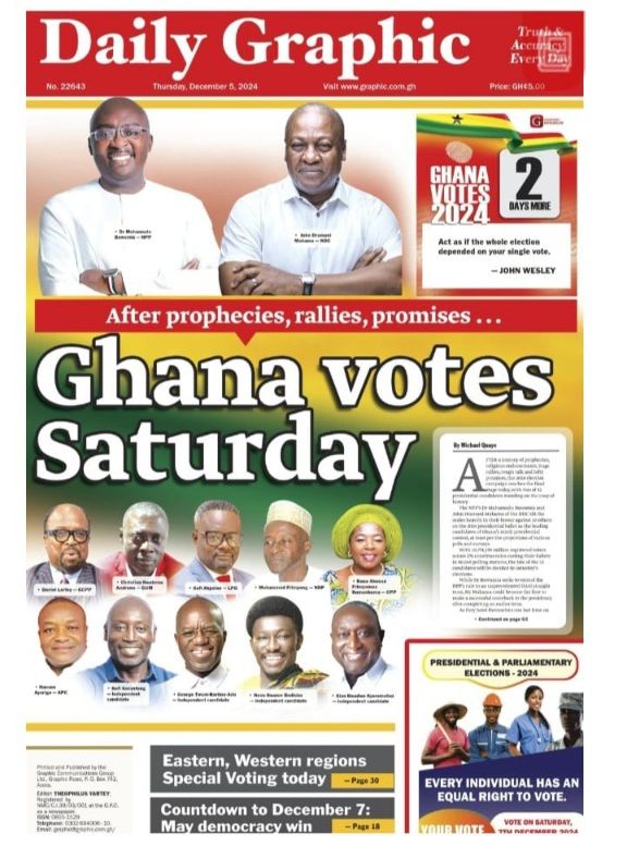 RGG NEWS takes a look at the top stories making headlines on the front pages of Ghanaian newspapers for Thursday, December 5, 2024