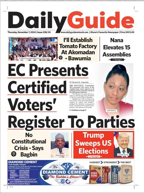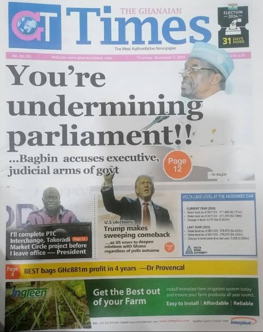 RGG NEWS takes a look at the top stories making headlines on the front pages of Ghanaian newspapers for Thursday, November 7, 2024