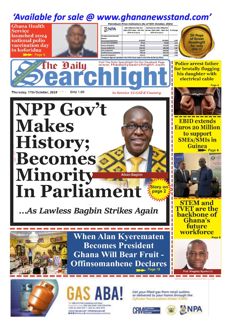 RGG NEWS takes a look at the top stories making headlines on the front pages of Ghanaian newspapers for Thursday October 17, 2024