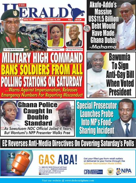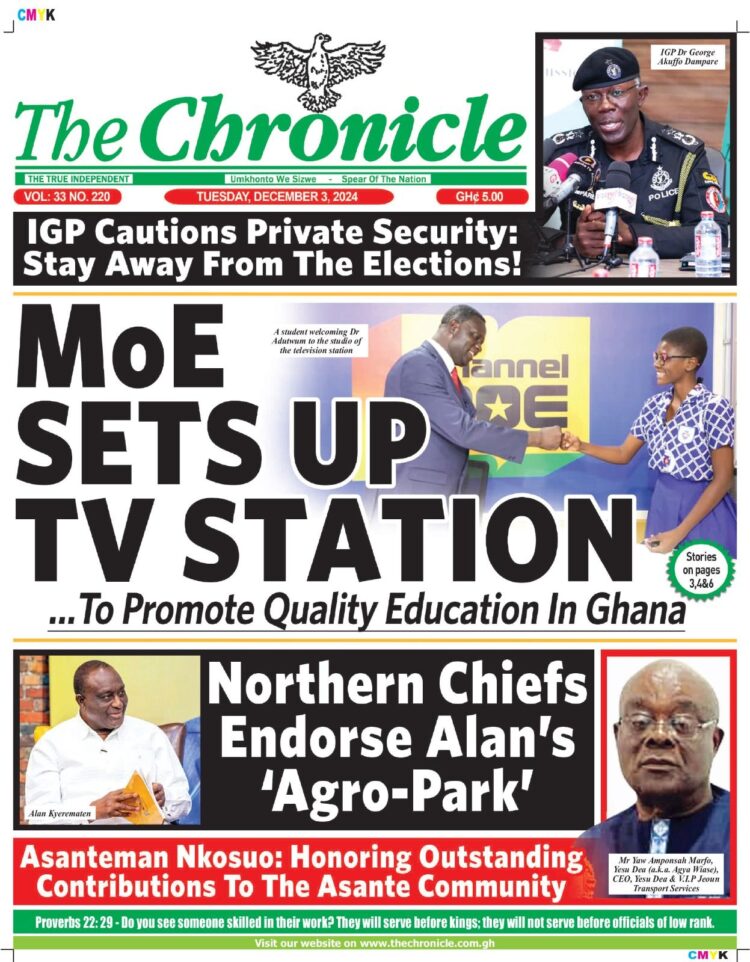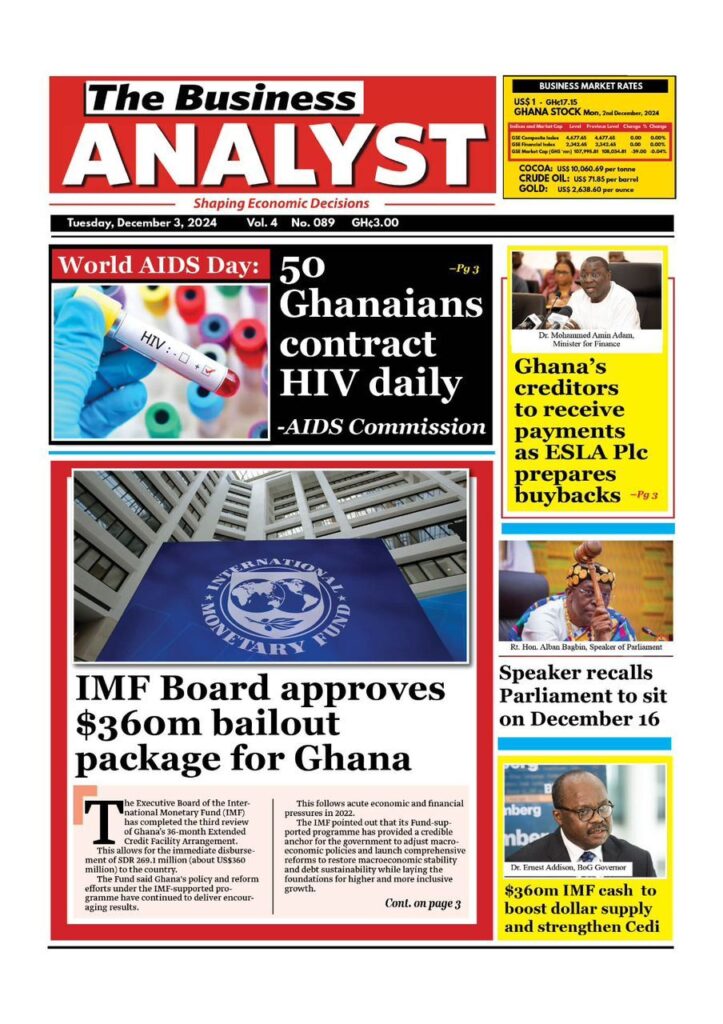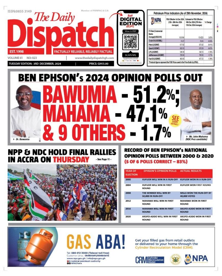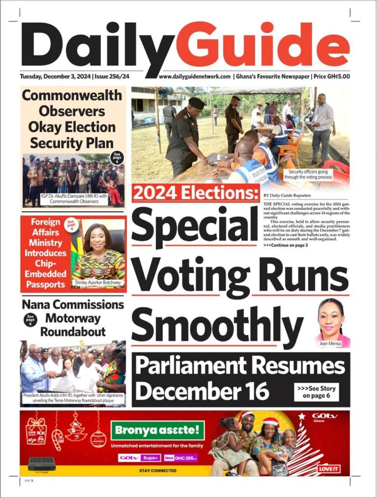 RGG NEWS takes a look at the top stories making headlines on the front pages of Ghanaian newspapers for Tuesday, December 03, 2024