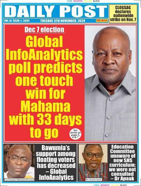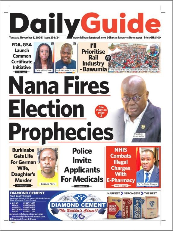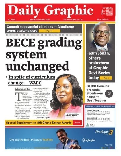 RGG NEWS takes a look at the top stories making headlines on the front pages of Ghanaian newspapers for Tuesday, November 5, 2024
