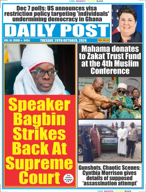 RGG NEWS takes a look at the top stories making headlines on the front pages of Ghanaian newspapers for Tuesday, October 29, 2024