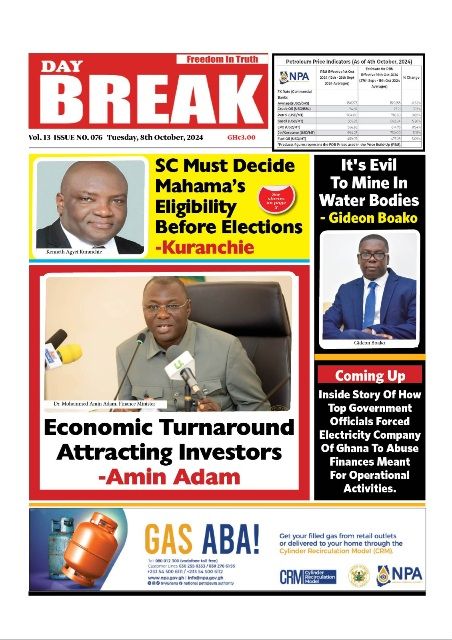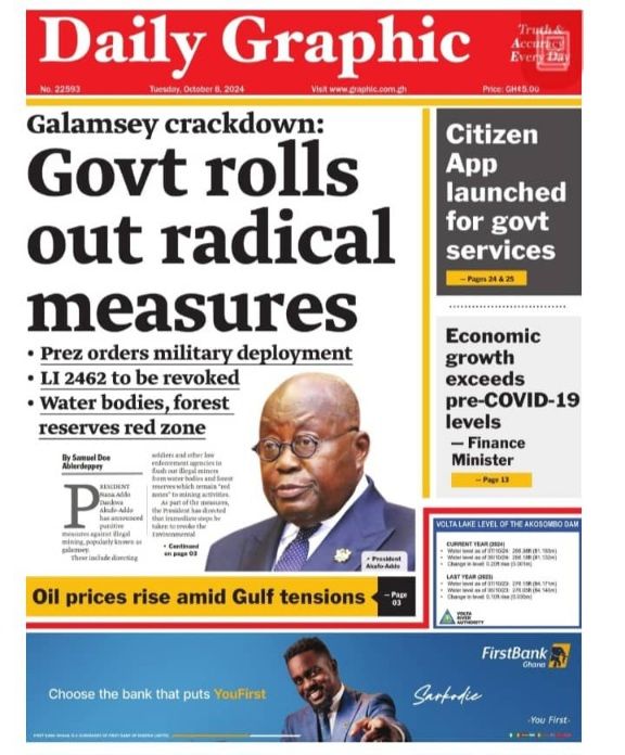 RGG NEWS takes a look at the top stories making headlines on the front pages of Ghanaian newspapers for Tuesday, October 8, 2024
