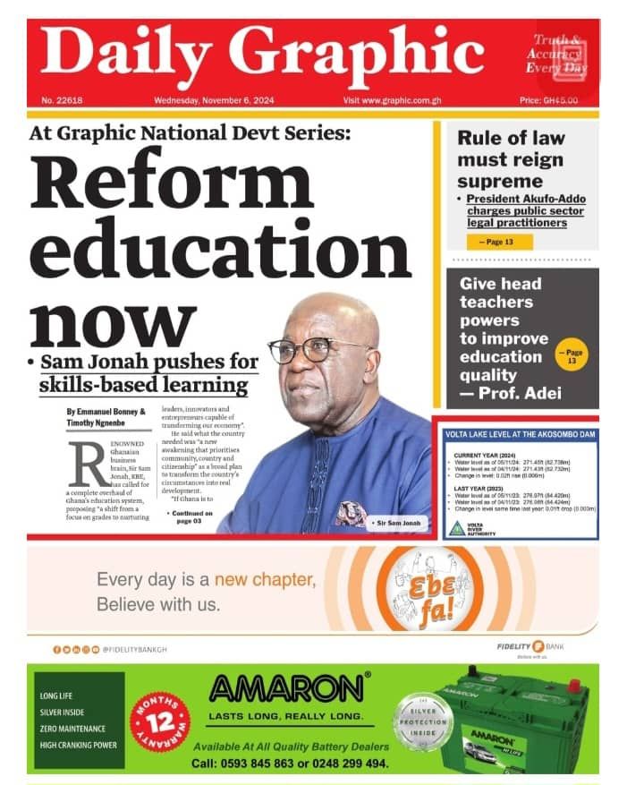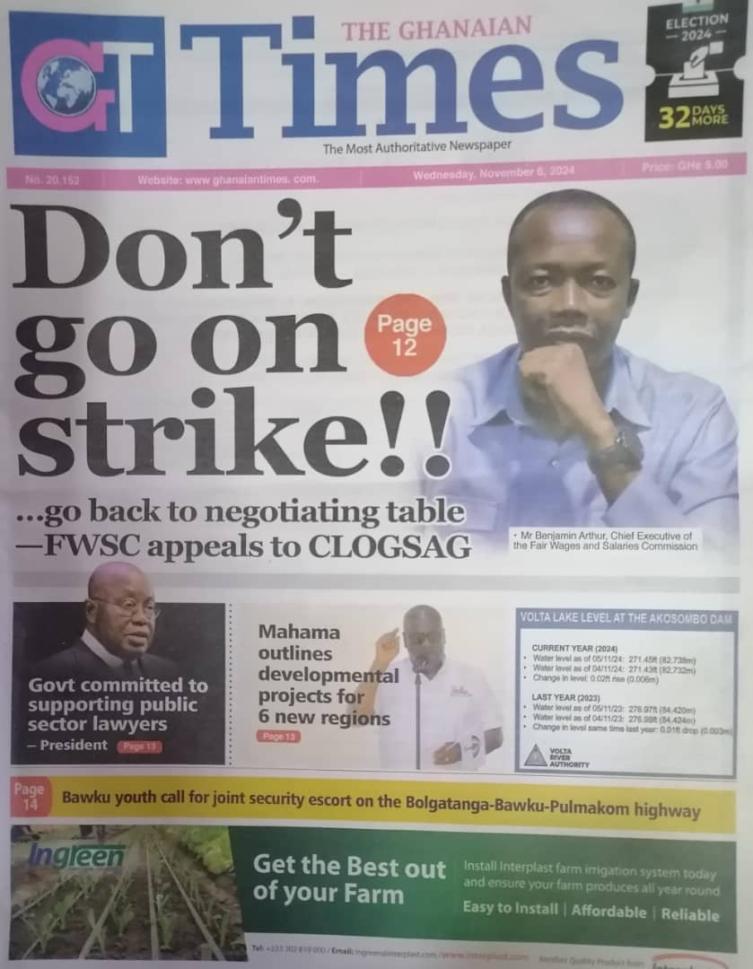 RGG NEWS takes a look at the top stories making headlines on the front pages of Ghanaian newspapers for Wednesday November 6, 2024