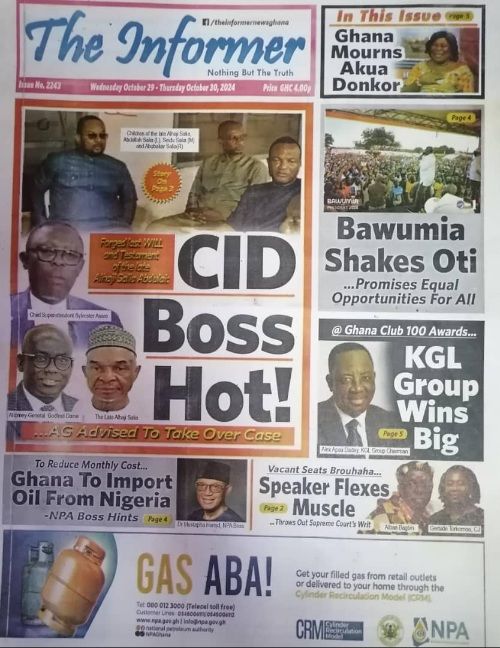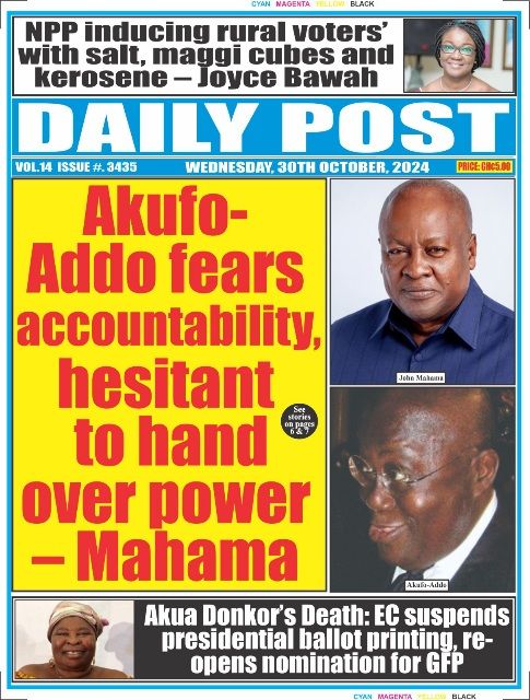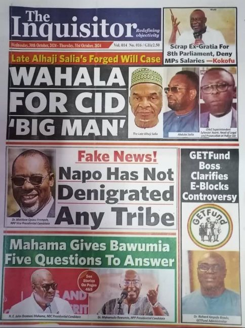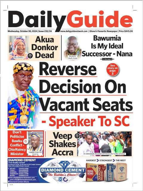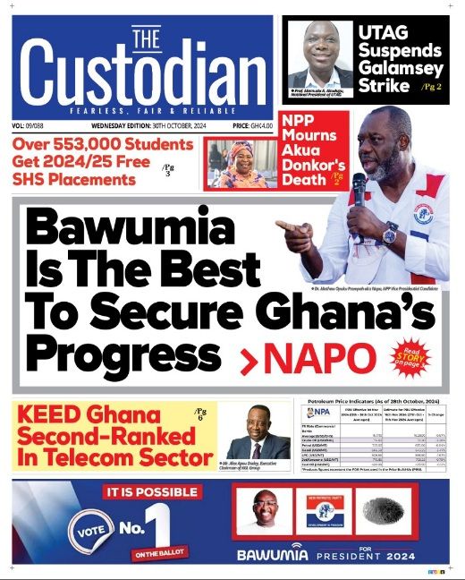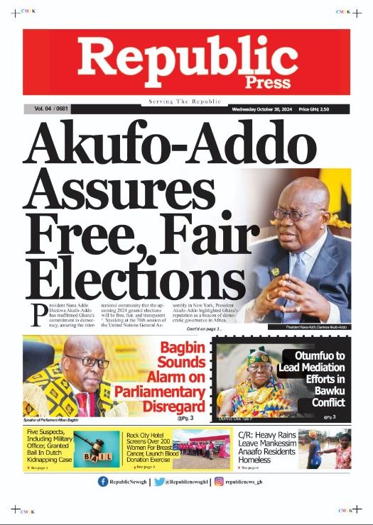 RGG NEWS takes a look at the top stories making headlines on the front pages of Ghanaian newspapers for Wednesday, October 30, 2024