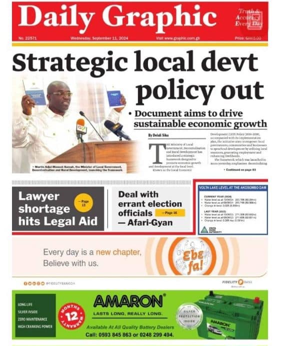 Newspaper Headlines- Wednesday September 11 2024