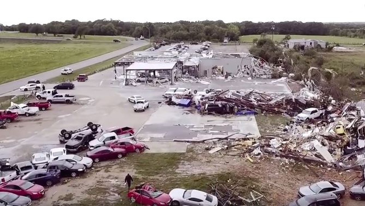 Footage from the area showed a filling station and rest stop almost completely destroyed, with twisted metal littered over damaged vehicles.