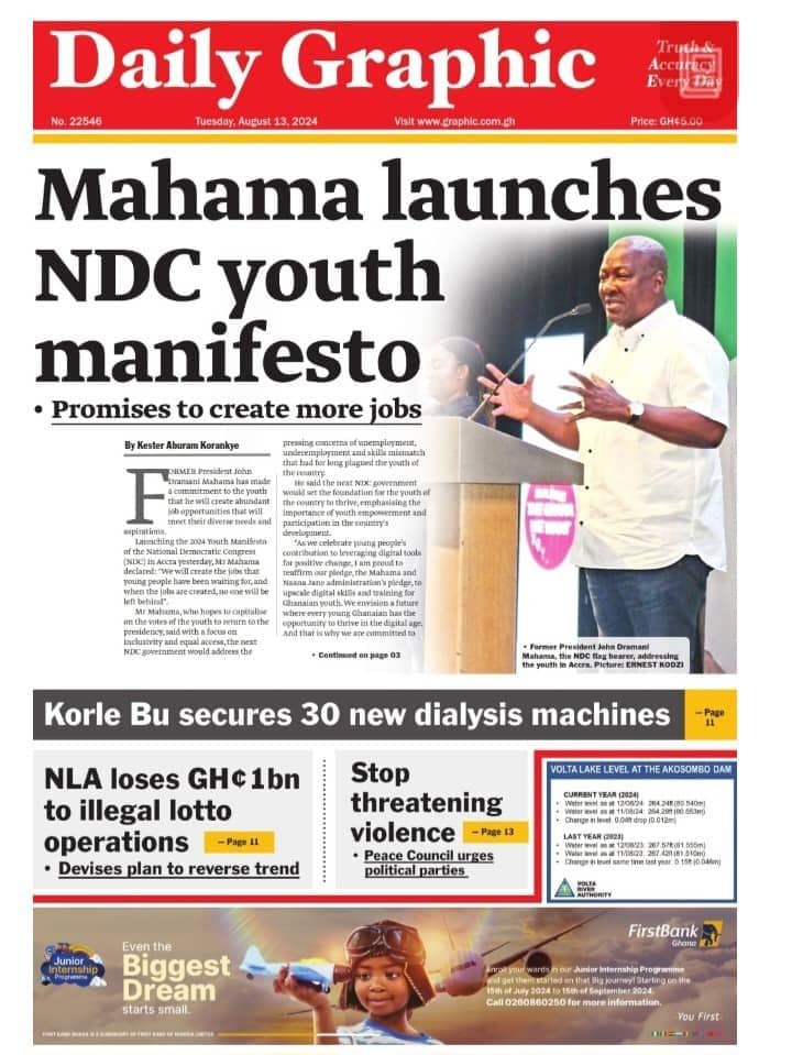 Tuesday August 13, 2024 Newspaper Headlines