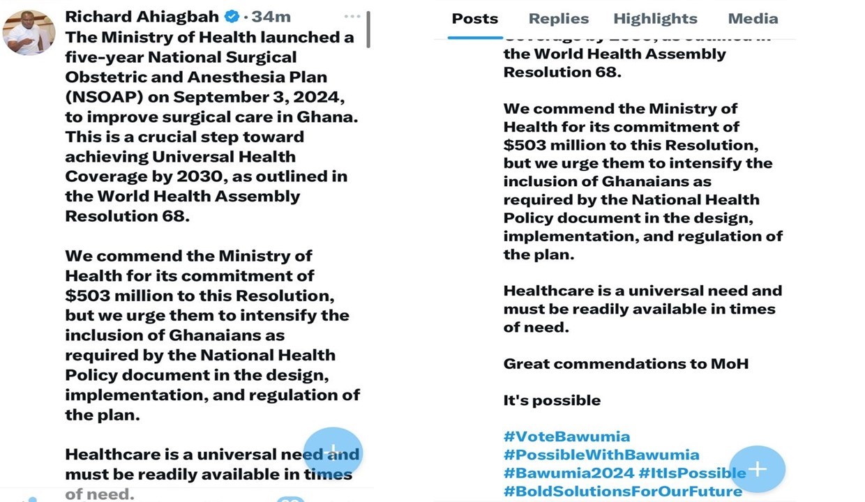 Richard Ahiagbah, Director of Communications for the New Patriotic Party (NPP), praised the Ministry’s efforts and financial commitment to the cause in a post on X. He stated, “We commend the Ministry of Health for its commitment of $503 million to this Resolution, but we urge them to intensify the inclusion of Ghanaians as required by the National Health Policy document in the design, implementation, and regulation of the plan.”