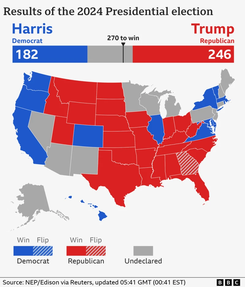 The Republican has now won the swing state of Georgia, following his projected victory in North Carolina.